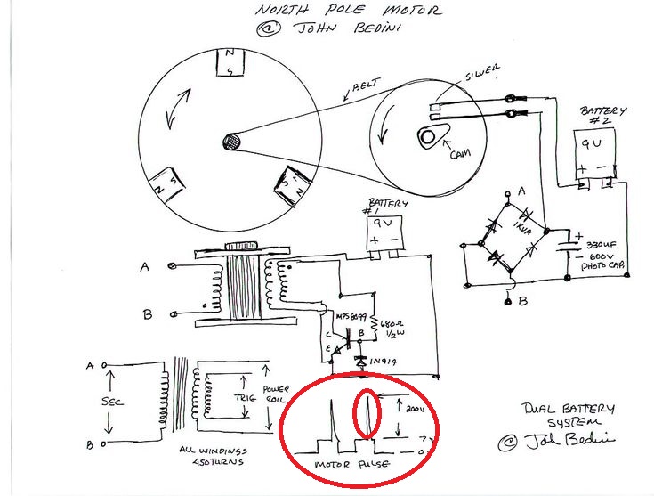 импульс пометил красным, это и есть сложения магнитных полей, МАГНИТА и КАТУШКИ, в момент пролёта. А это не ОЭДС. получается конденсатор действительно заряжается двумя импульсами, прямым, и ОЭДС после закрытия транзистора, НЕ дарам там диодный мост стоит.